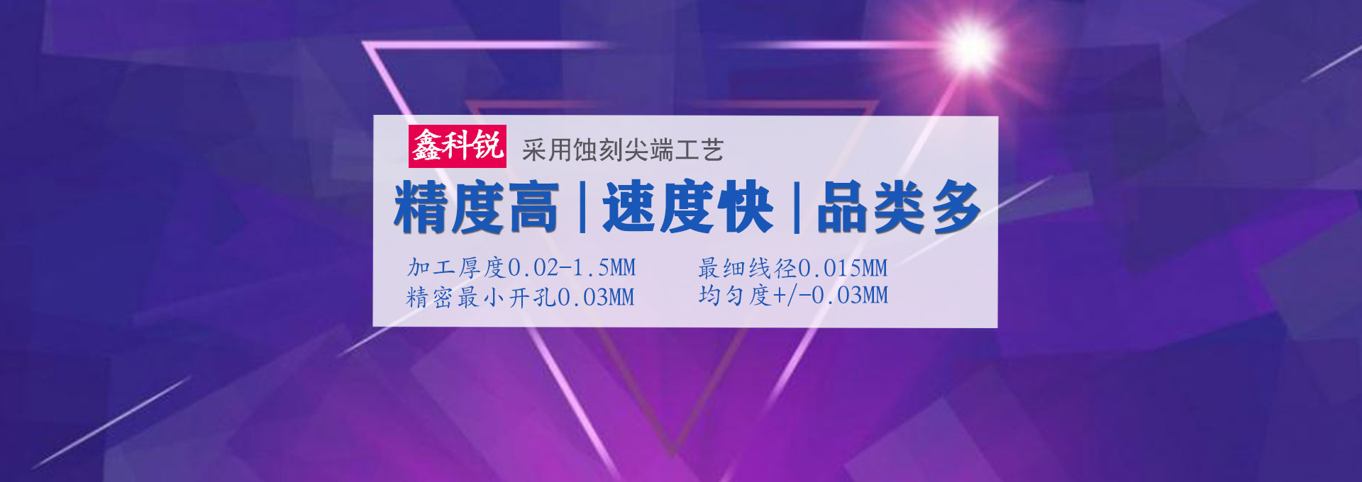 深圳市鑫科銳金屬制品有限公司是從事化學蝕刻,電蝕加工(EDM)的龍頭企業,蝕刻產品廣泛應用于:電子、精密五金、通訊、汽車工程、醫(yī)療、航空航天、石油化工、軍事、科研、精密工程應用元件等行業。
